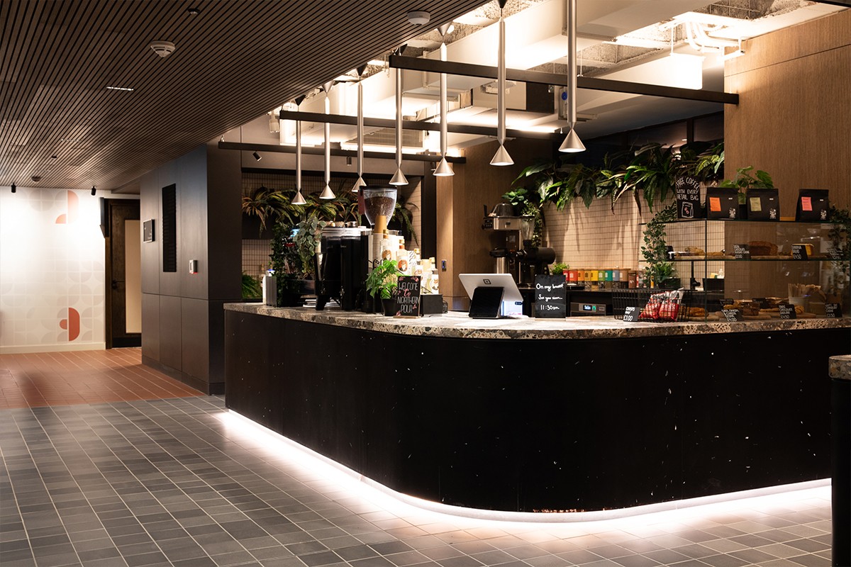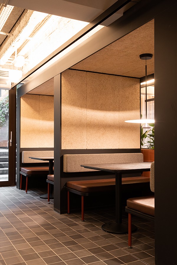 Within the on-site cafe, the Audo Copenhagen Co Dining Chairs provide stylish, supportive seating with the Hay Terrazzo Tables chosen to perfectly complement.
