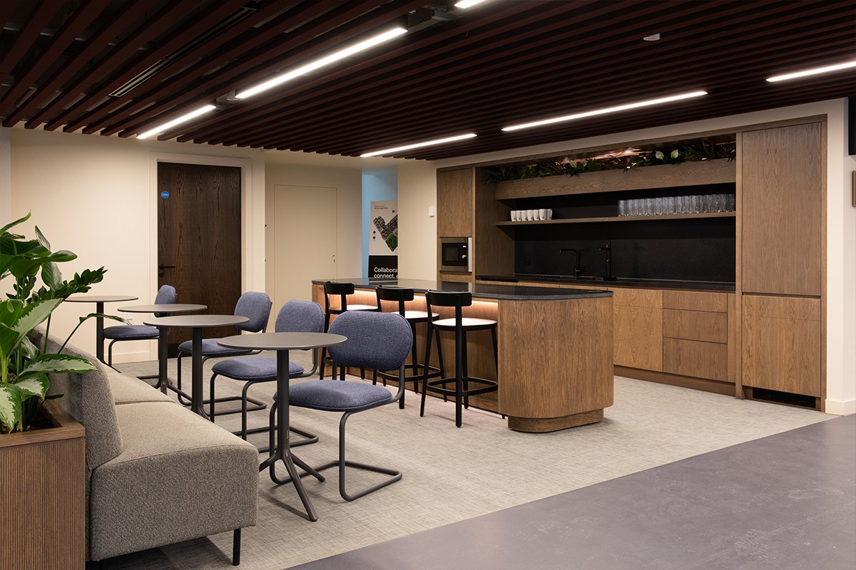 The interior design for Pall Mall embraced a philosophy of flexibility, wellbeing, and connectivity – creating environments that balance individual work with collaborative culture. The furniture and lighting solutions were carefully selected to respond to varying activity zones, from focused desk areas and formal meeting rooms to informal lounge areas and social spaces.